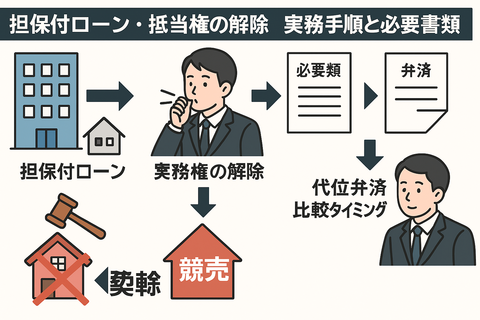 抵当権・競売 担保付ローン・抵当権の解除・競売回避の具体手続き 抵当権解除で競売回避する実務手順と必要書類と代位弁済比較タイミング 完済以外の代位弁済・任意売却を含む抵当権解除の実務手順、必要書類、競売回避のタイミングと比較を整理。 抵当権・競売